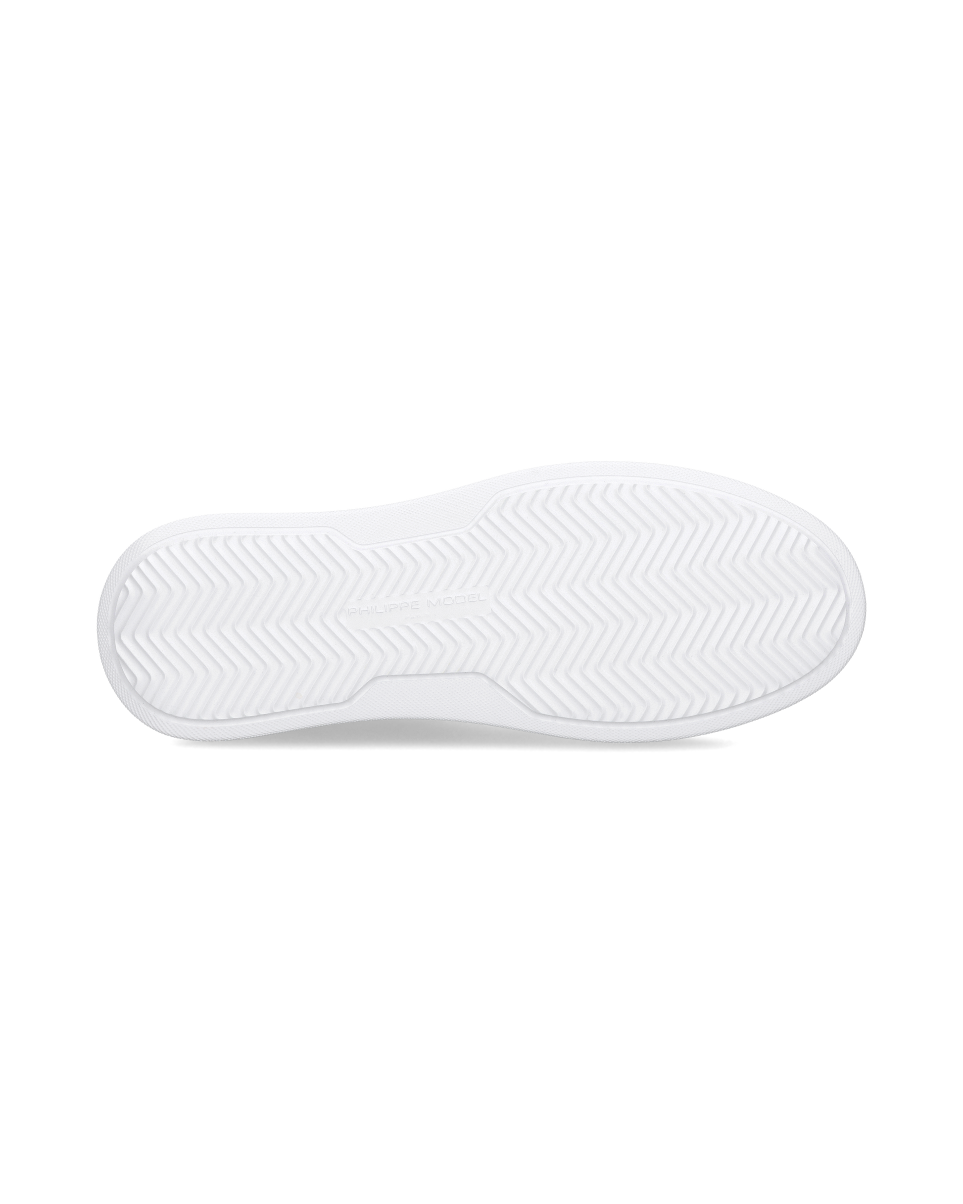 Essentialität und coole Formen in Reinweiß und Dunkelblau: neuer Vorschlag des Sneaker Temple mit Obermaterial aus weißem Leder und Spoiler aus dunkelblauem Lackleder. Dieser flache Herrenschuh mit hoher Sohle ist perfekt für eine aktive und schicke Note in der Stadt und wird durch eine kräftige Sohle aus ultraleichtem Gummi mit handgefertigtem Finish ergänzt.