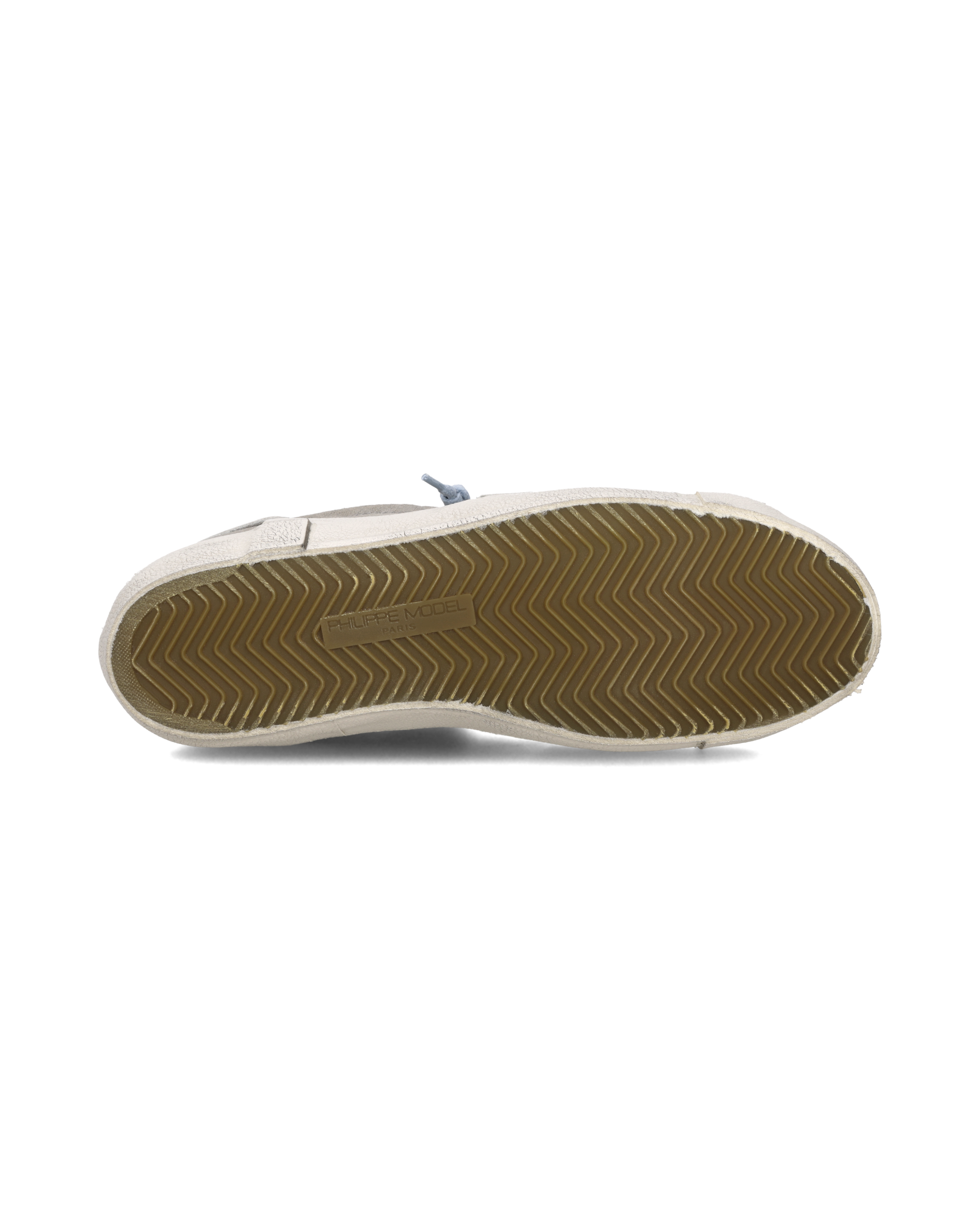 Diese Sneakers Prsx aus Wildleder und behandeltem grauem Leder für einen Vintage-Effekt vereinen urbanen Stil und Persönlichkeit. Die Details sind die Besonderheit: hellblaue Schnürsenkel, Untergrund des Wappens und Spoiler in Weiß machen dieses Modell klar und maskulin. Die legendäre Sohle mit handwerklicher Fräsung und Flecken unterstreicht den Used-Effekt des Designs dieses flachen Herrenschuhs.