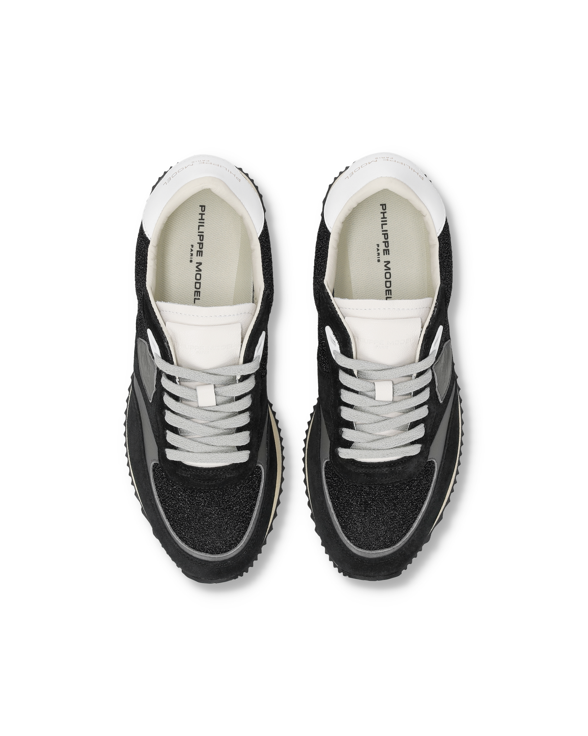 Blville puts a stylish spin on one of the most loved icons in our archive. More than just a sneaker, it's an invitation to take every step with a free spirit and personality. In this version, suede and glitter-effect fabric in shades of black combine with grey suede and leather details, creating a retro look with a bold character. Iconic lines, contrasting textures, and carefully selected materials where comfort meets timeless style.