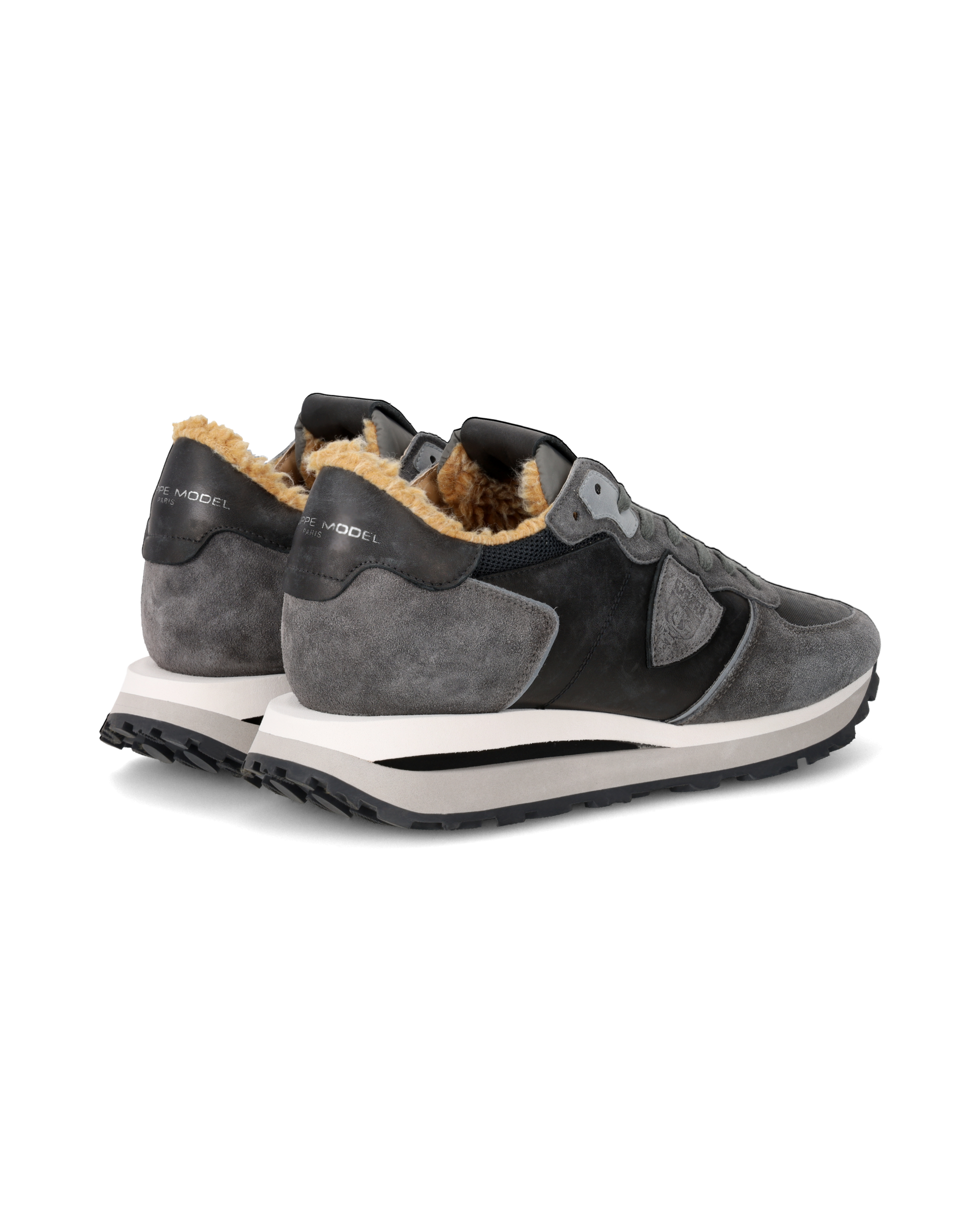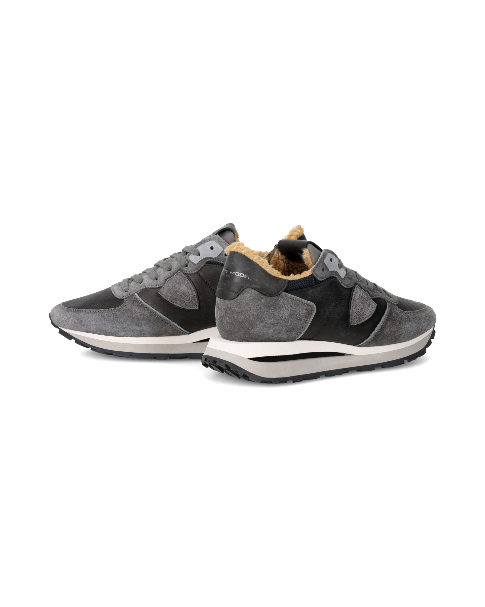 Inspired by the shape of vintage running shoes, the Tropez Haute mixes fine materials and trendy treatments for everyday city sneakers. This grey washed suede version is complemented by faux fur lining to face even the coolest days in style. The ultra-light rubber sole with handcrafted finishes features a protruding design on the heel and a contrasting 3D insert for a more contemporary look.