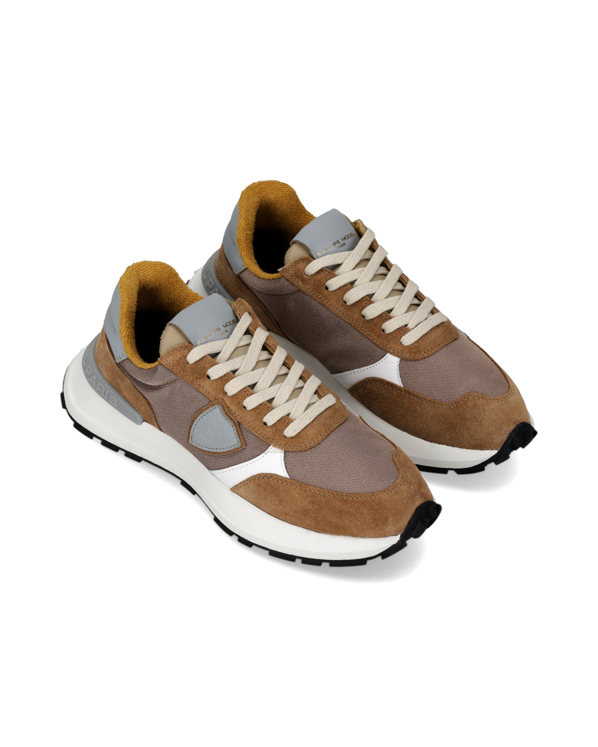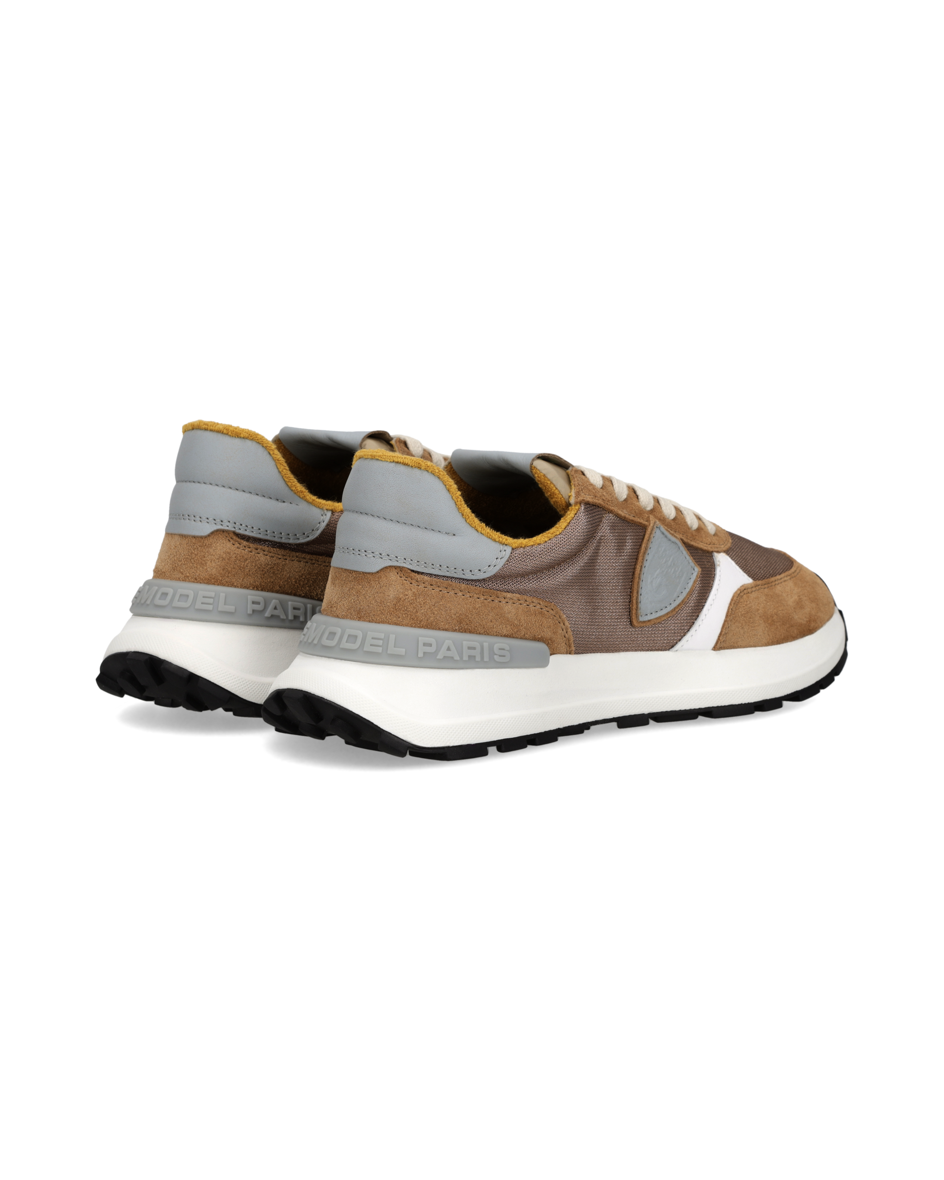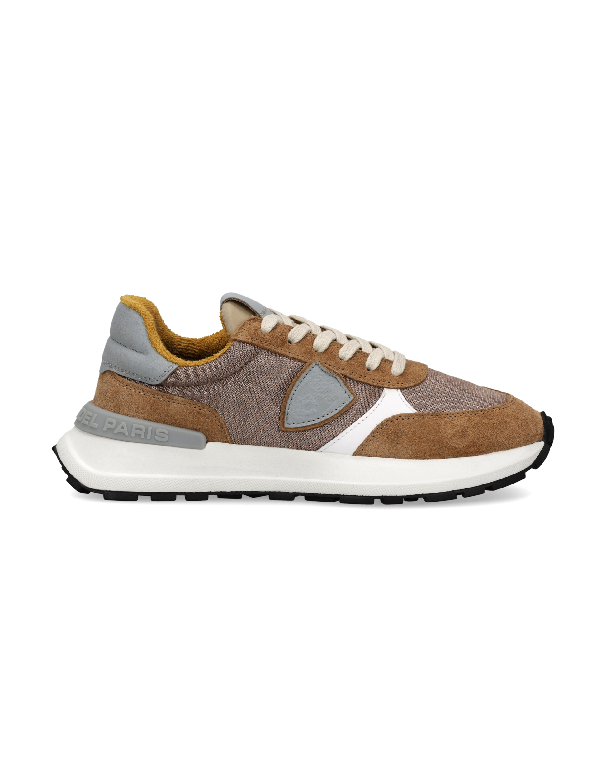Inspired by vintage racing, Antibes reinvents the canons of running shoes and evokes the fresh, natural style of the French Riviera with a youthful attitude. This bronze nylon and cognac suede sneaker, with contrasting white leather details and a heel tab in the same shade as the shield, has a Strobel construction to ensure maximum flexibility and comfort. The sand-coloured sole is super lightweight in EVA with a height of 3.5 cm. The Ortholite insole provides a soft walk, with a breathable lining.