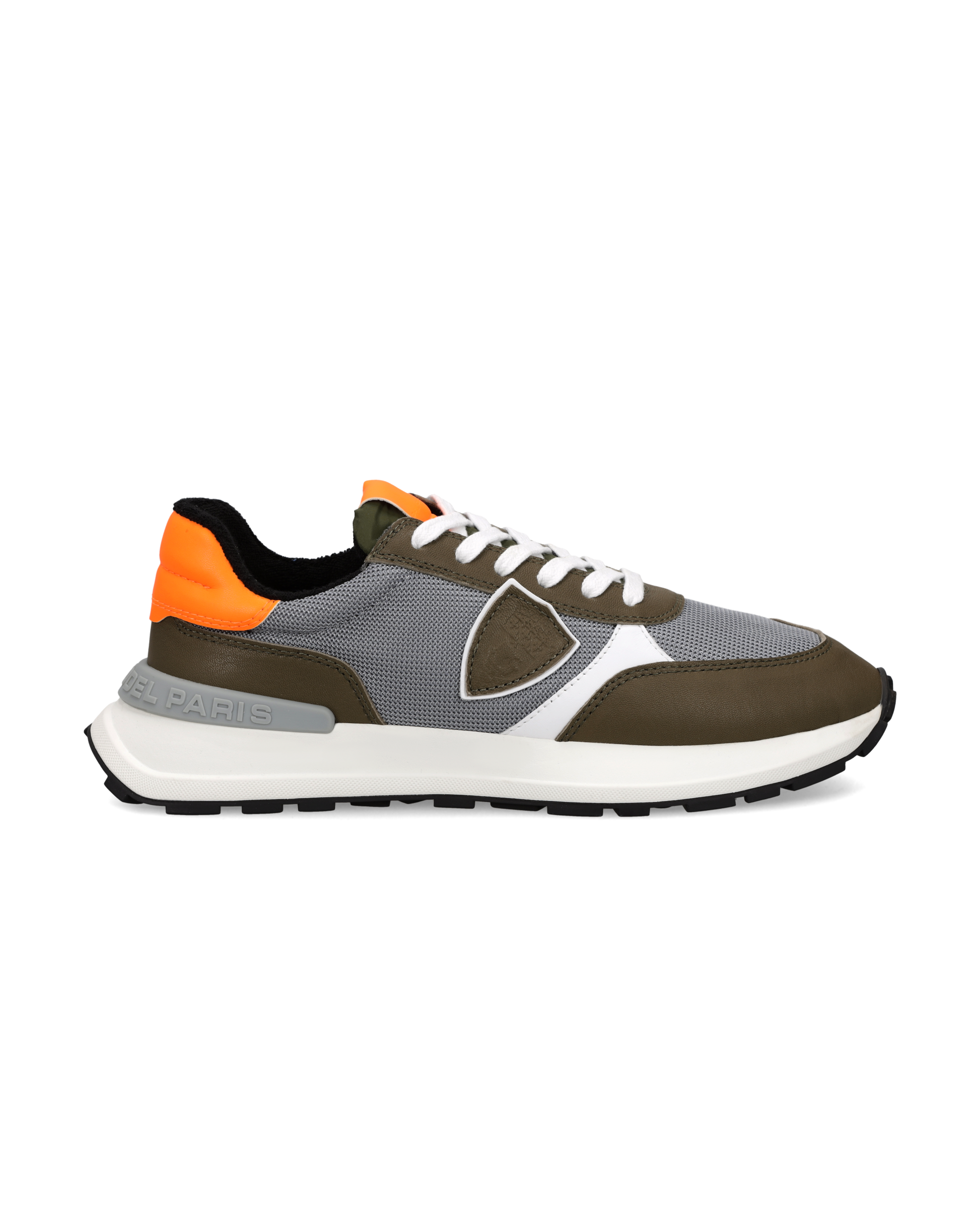 Inspired by vintage racing, the Antibes reinvents the running shoe, evoking the fresh, natural style of the French Riviera with a youthful attitude. This grey nylon model with military green suede details and a contrasting orange heel tab features a Strobel construction for maximum flexibility and comfort. The super-lightweight white EVA outsole measures 3.5 cm in height. The Ortholite insole provides a soft ride, complete with breathable lining.