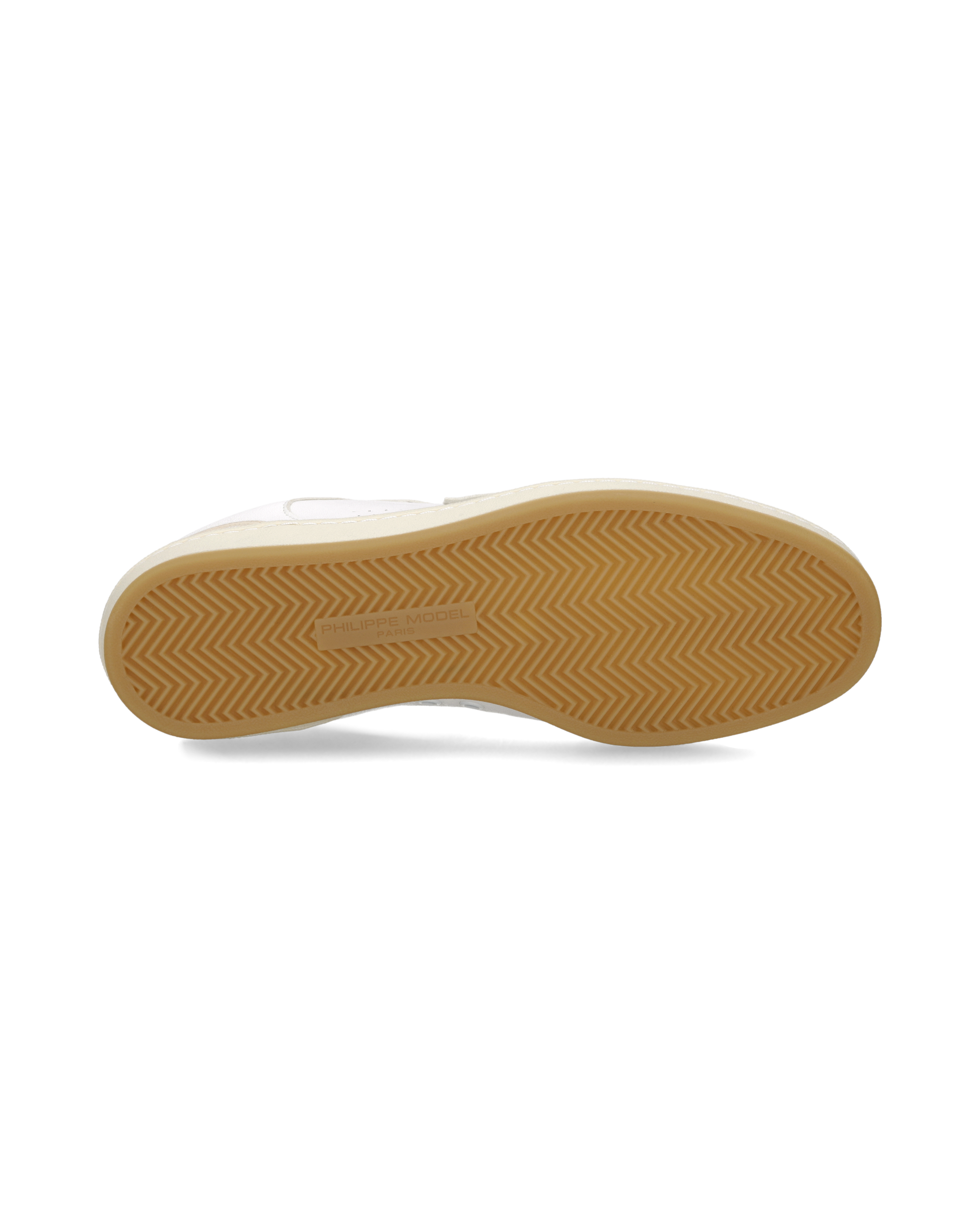 Pgal is born from the vibrant energy of vintage basketball courts in Paris, reimagined with a contemporary twist. This version in all-white leather is enhanced by a sand heel tab, making it simple and easy to pair with any outfit. The sole is stitched to the upper for a comfortable and durable fit, designed to carry you in style through your most dynamic days.