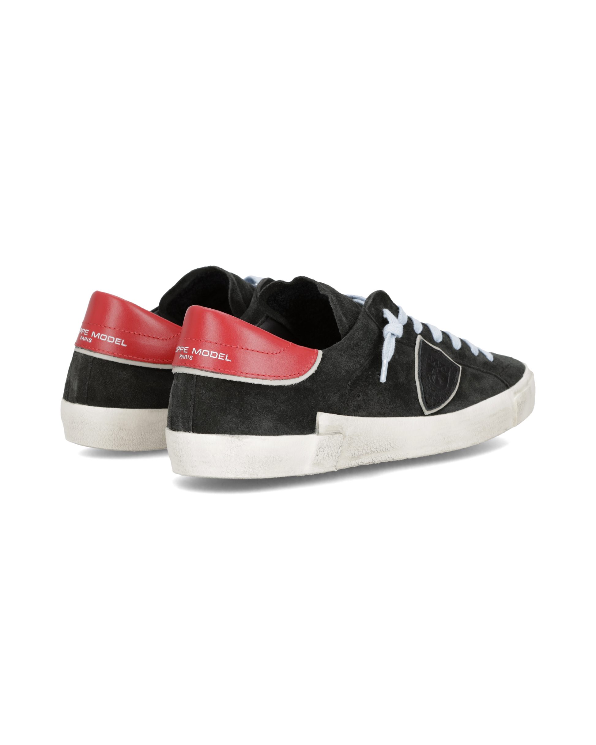 Made from suede and black leather treated for a vintage effect, these Prsx sneakers combine urban style with personality. Pop hues, such as the light blue laces, the contrasting under-shield and red heel tab add a distinctive touch to every step. The iconic sole with handcrafted milling and markings emphasises the worn effect of this low-top men's sneaker.