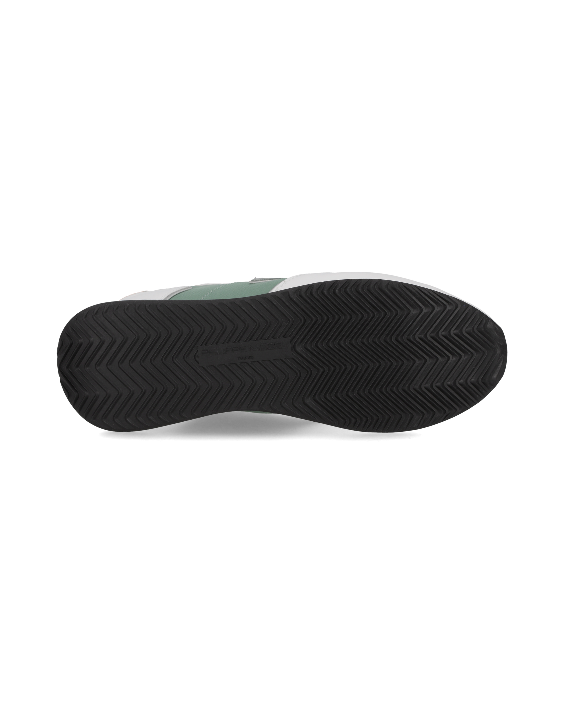 An iconic model of the brand, this sneaker stands out for its sinuous outsole, inspired by new running trends and designed to offer the perfect balance of style and comfort. The light grey leather upper is enhanced with nylon and mesh inserts in shades of bottle green and an orange heel tab, creating a textured effect and a contemporary look. The leather and terry cotton lining ensures breathability and softness, ensuring maximum comfort throughout the day. The hand-crafted microporous EVA sole provides lightness and cushioning, with a 3 cm heel height for a dynamic and refined silhouette.
