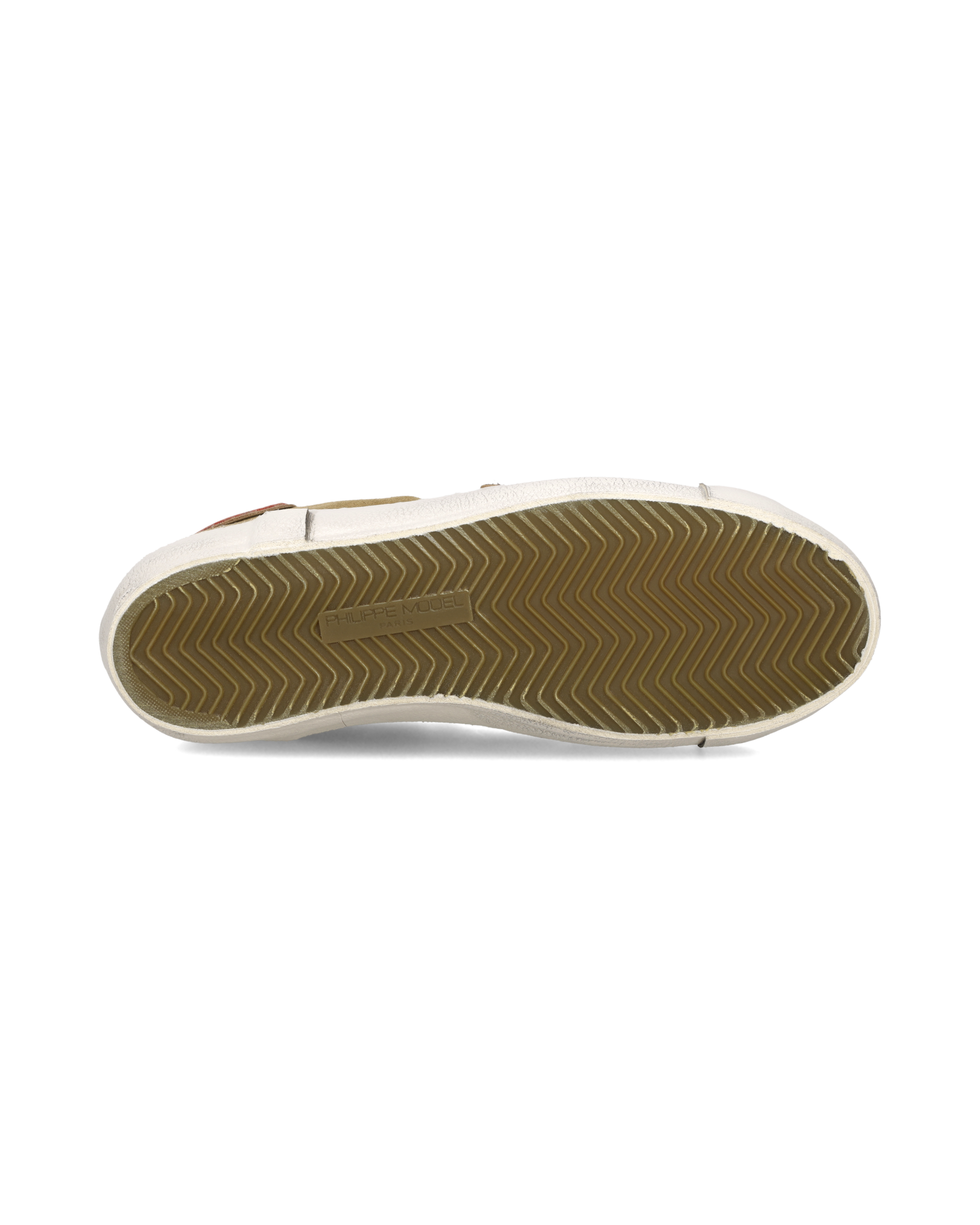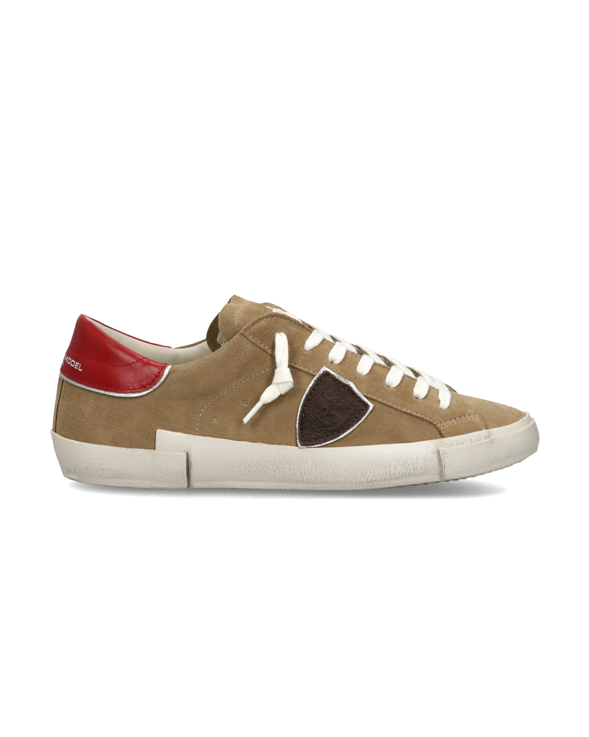 Réalisées en suède et cuir traité de couleur beige pour un effet vintage, ces baskets Prsx allient style urbain et personnalité. Les nuances pop, telles que les lacets blancs, l'écusson noir et le contrefort en cuir rouge, apportent une touche distinctive à chaque pas. La semelle emblématique avec un fraisage artisanal style usé souligne l'effet vieilli du design de cette chaussure basse pour homme.