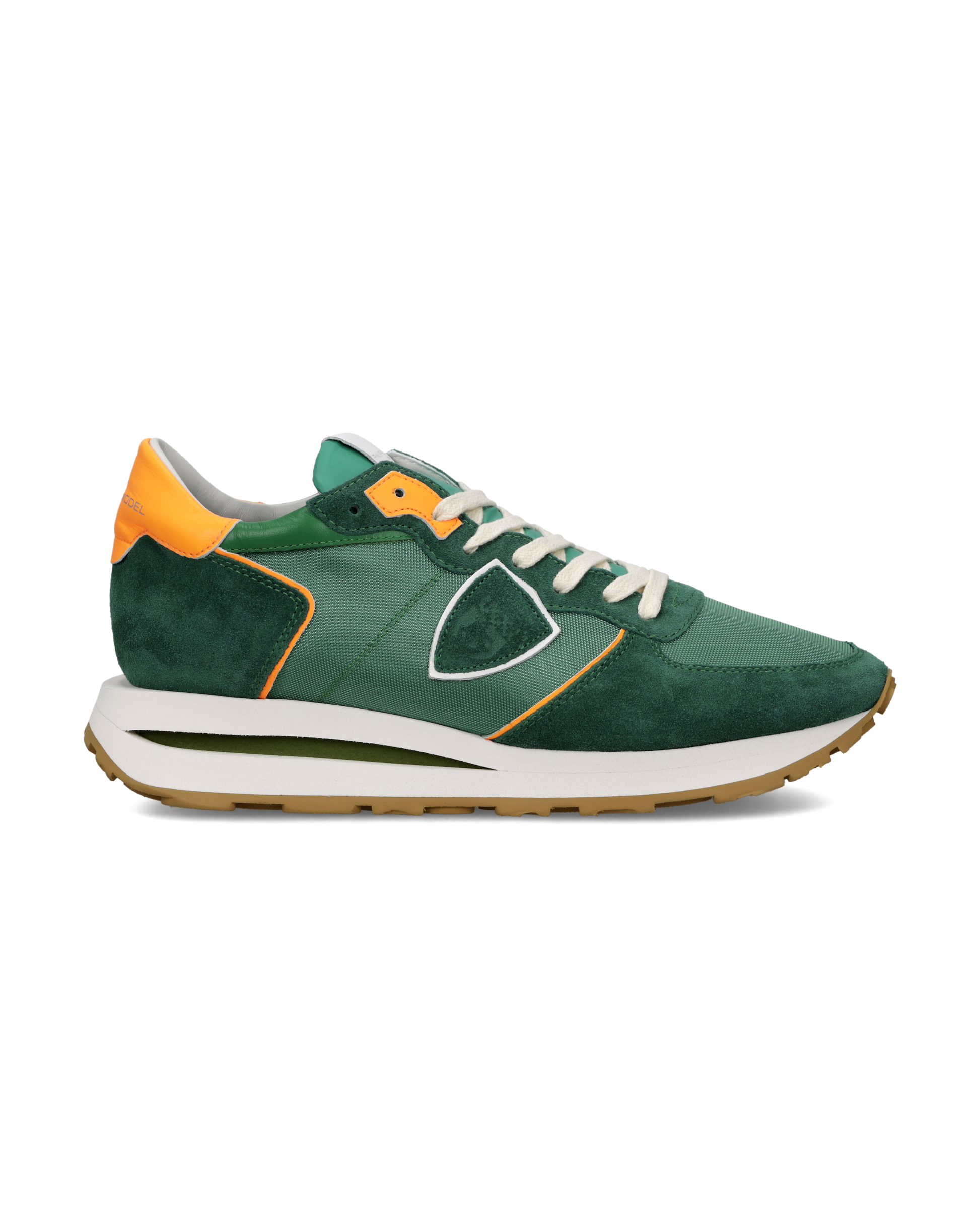Guizzi arancioni lavorazioni artigianali rendono unica questa nuova versione della sneaker Tropez Haute: la tomaia in mesh suede verde è completata da dettagli spoiler arancioni a contrasto, per un look urbano grintoso. La suola in gomma microporosa a doppia altezza con fresature artigianali inserto tridimensionale sotto il tallone completano il design.