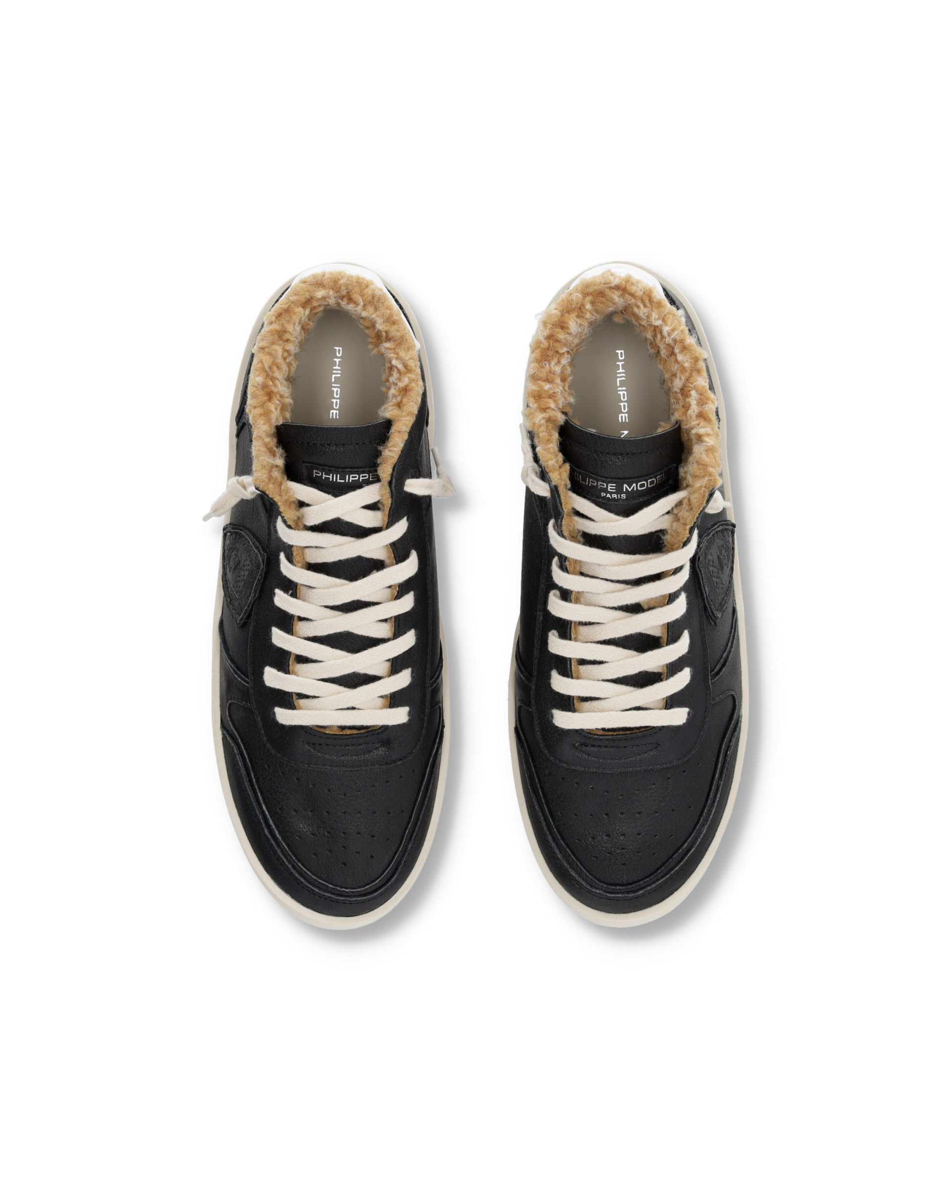 Lo stile sportivo in città ha una nuova forma: la sneaker Nice total black in versione alta riprende le linee dei modelli vintage con le traforature sulla punta e il topponcino a contrasto completate dalla fodera in tessuto effetto ecomontone per offrire tutto il calore e il comfort possibili. La suola con fasciatura artigianale e battistrada dentellato completa il modello con una nota iconica.