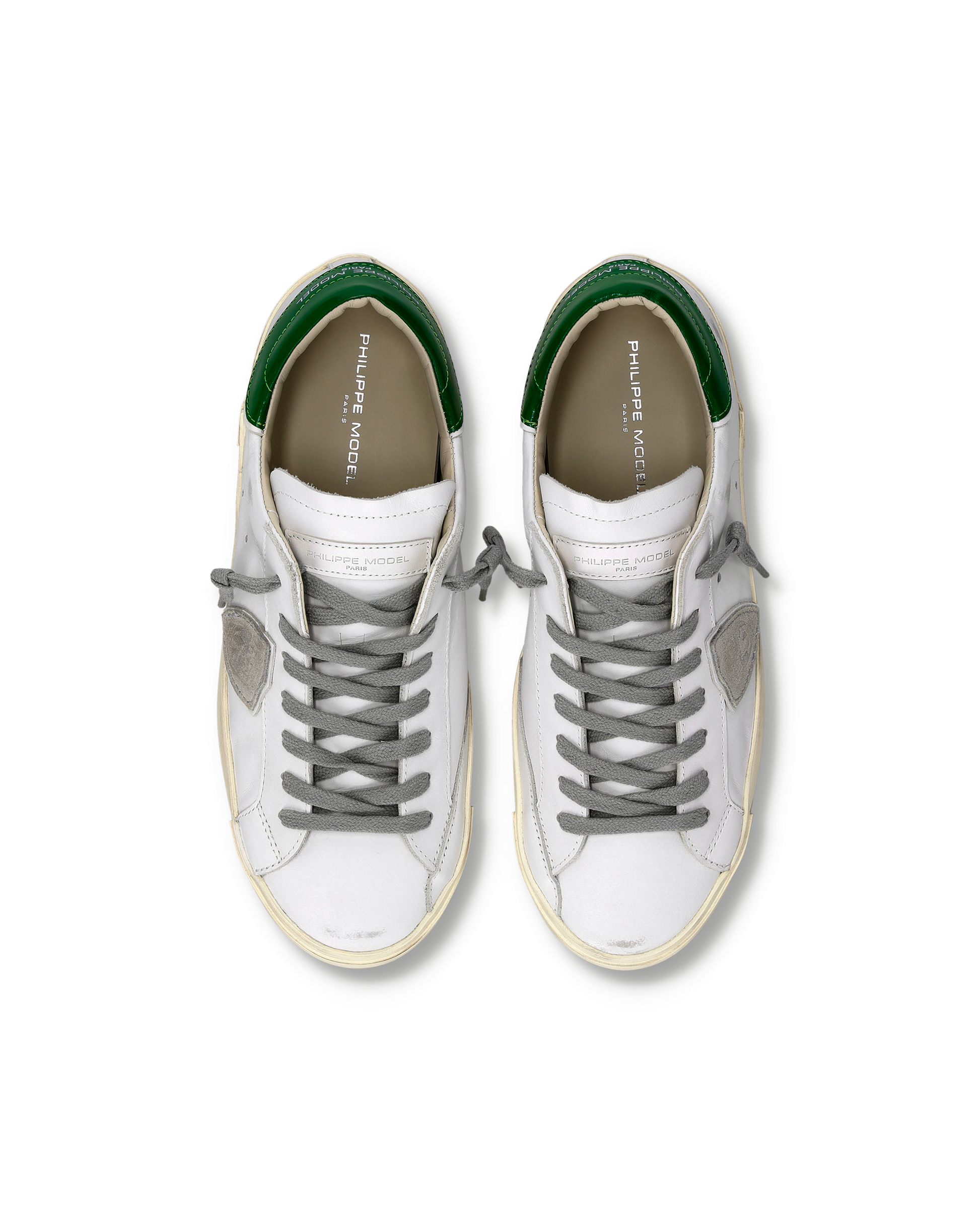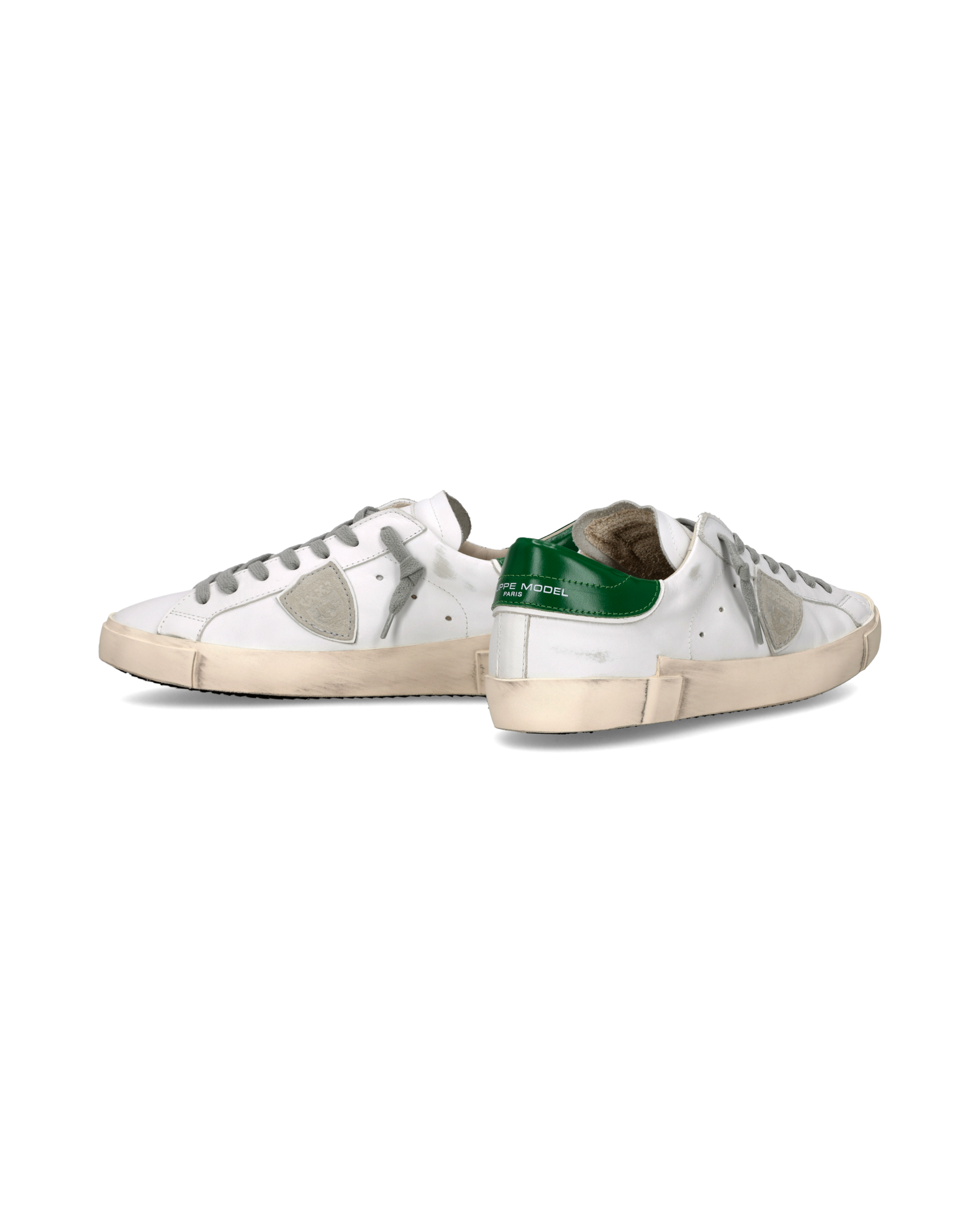 Look vissuto e forme ispirate allo street style anni '80: la sneaker Prsx è un grande classico del casual metropolitano. La tomaia in pelle bianca è trattata per donare un effetto vintage. Il paio si distingue per i dettagli pop come lo spoiler verde ed i lacci e lo scudetto sui toni del grigio. L’iconica suola con fresature artigianali e sporcature enfatizza l'effetto vissuto del design di questa scarpa bassa da uomo.
