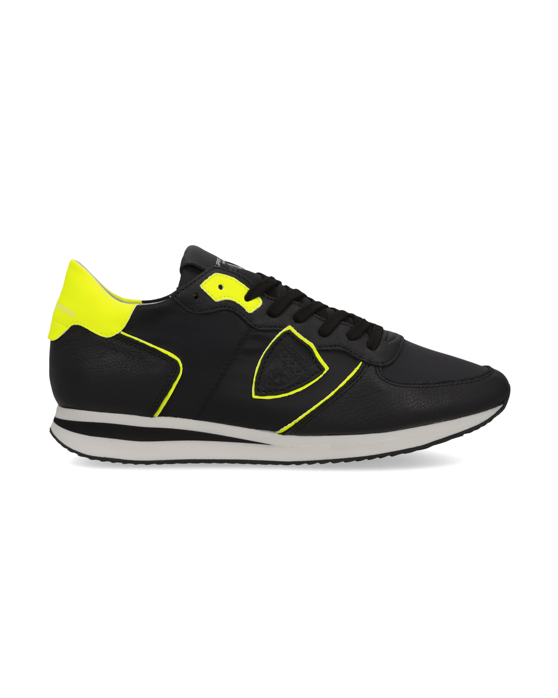 Modello iconico del brand, questa sneaker si distingue per la sua suola sinuosa, ispirata alle nuove tendenze running e pensata per offrire un equilibrio perfetto tra stile e comfort. La tomaia in pelle è arricchita da tessuto tecnico che dona un effetto materico e un look contemporaneo a questa sneaker total black. Questa scarpa si distingue per i dettagli in giallo su spoiler, occhiello e piping dello scudetto, che aggiungono un tocco di energia e personalità alla silhouette. La fodera interna in pelle e cotone spugnato garantisce traspirabilità e morbidezza. La suola in EVA microporosa, lavorata a mano, conferisce leggerezza e ammortizzazione, con un’altezza tallone di 3 cm per una silhouette dinamica e raffinata.
