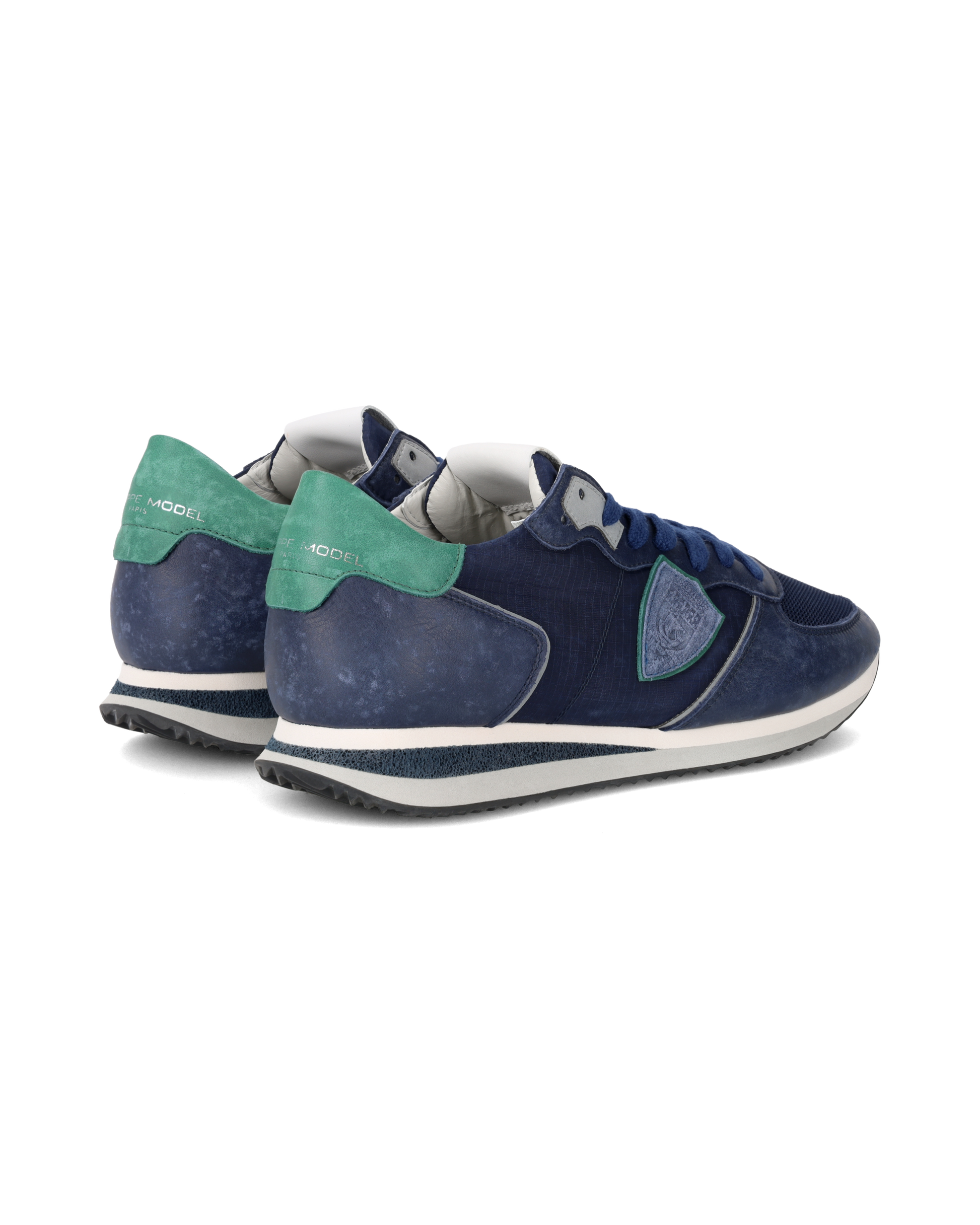 Cuore sportivo look metropolitano: nuova versione della sneaker Trpx con linee ispirate alle running vintage anni '70 rivisitate in chiave contemporanea con materiali e finiture up to date. Questo modello in colore blu è realizzato in nabuk e tessuto ripstop con inserti in mesh sulla punta e tocchi di verde su piping e topponcino. La suola in gomma ultra leggera presenta una linea running con fasce di colore a contrasto e finiture artigianali.