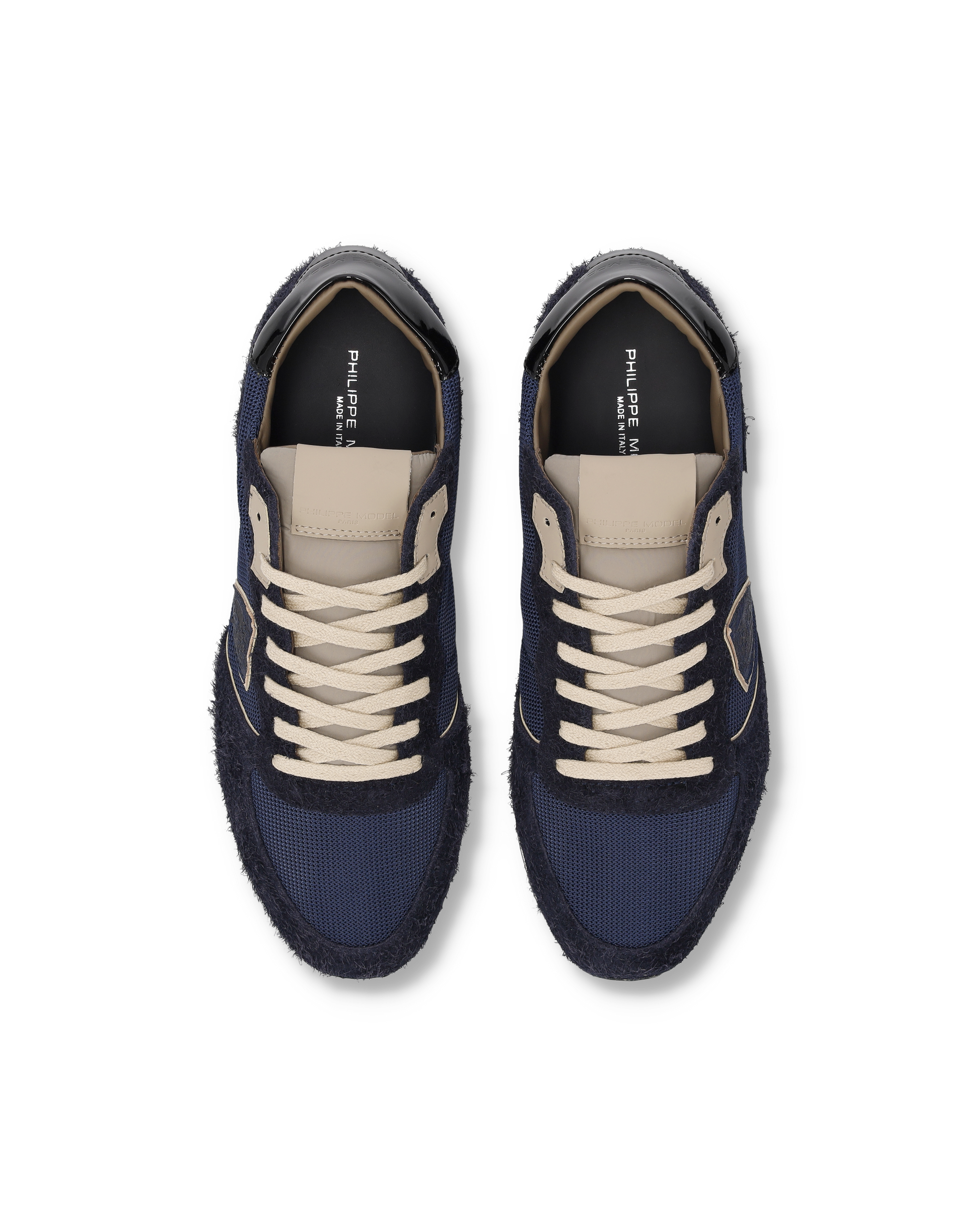Le linee sportive della sneaker Trpx vengono esaltate dal sapiente mix di materiali della tomaia con mesh e suede spazzolato. Il topponcino nero in vernice a lo scudetto laterale blu metallizzato completano il modello per un look metropolitano e cool. La suola in gomma ultra leggera con finiture artigianali e inserto tridimensionale sotto il tallone completa il design.