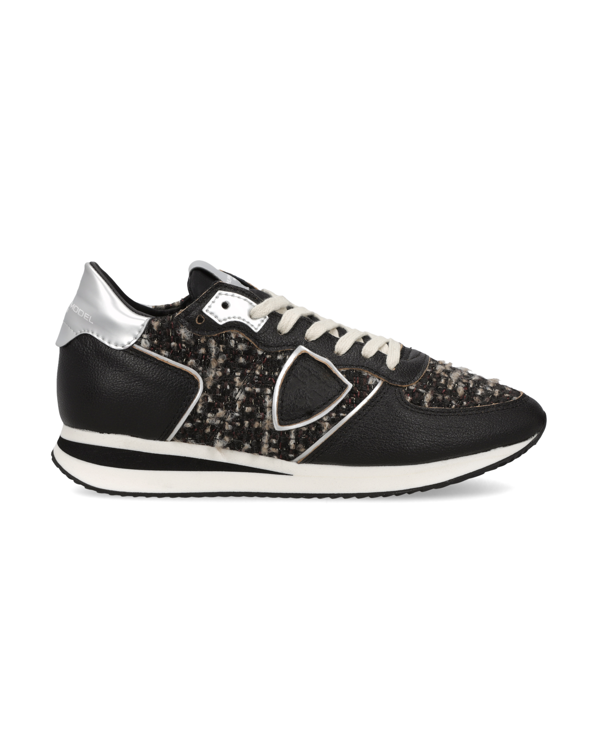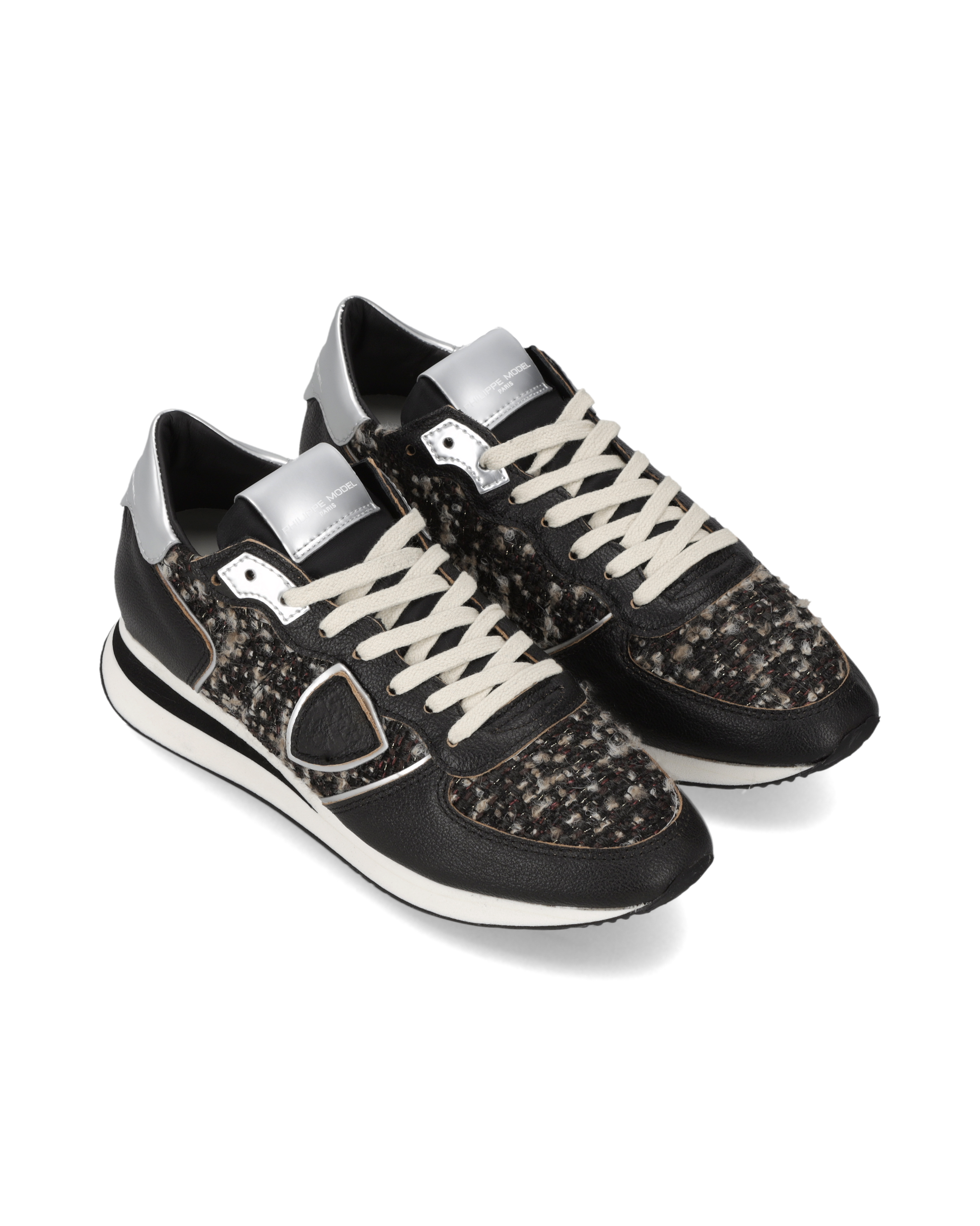 Materiche, trendy e sportive, le sneaker Trpx svelano un sorprendente lato cool grazie alla tomaia in suede nero e tweed nella stessa tonalità. I tocchi metal su occhielli e spoiler completano un design che non passa inosservato. Suola in gomma ultra leggera con sagomature artigianali.